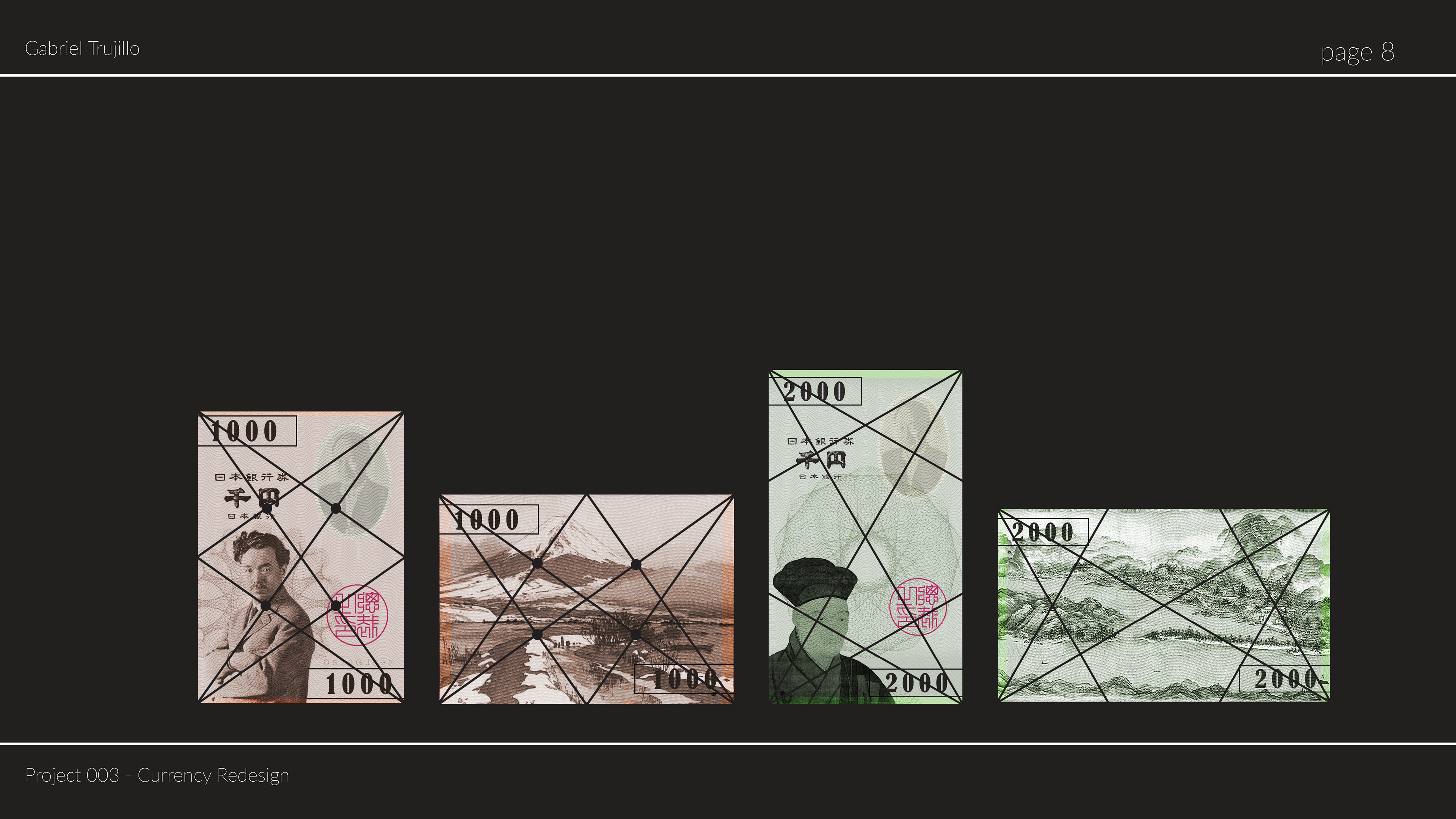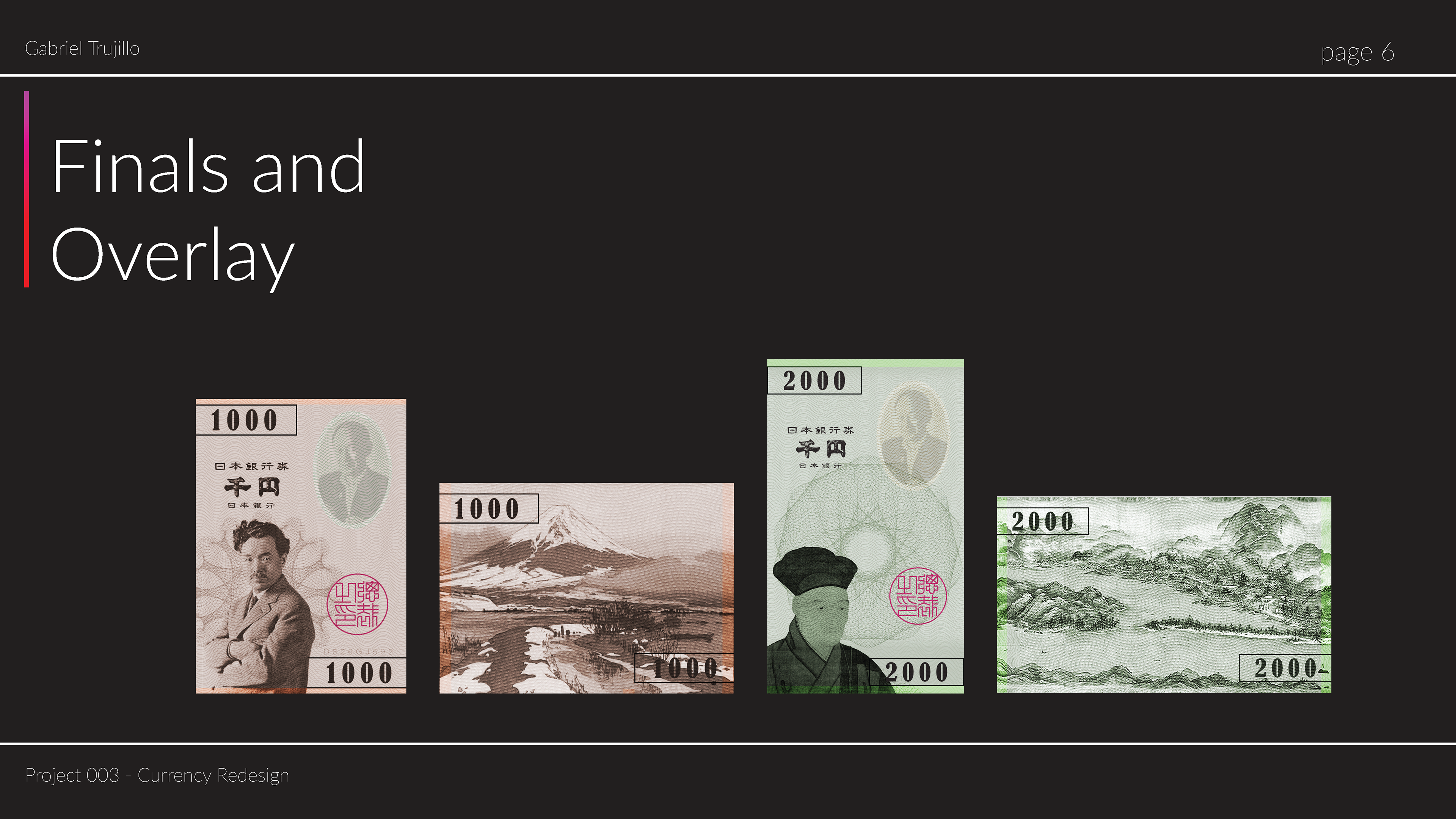When redesigning currency, accounting for security watermarks and features is incredibly important. I decided to design extremely detailed patterns as well as a holographic.